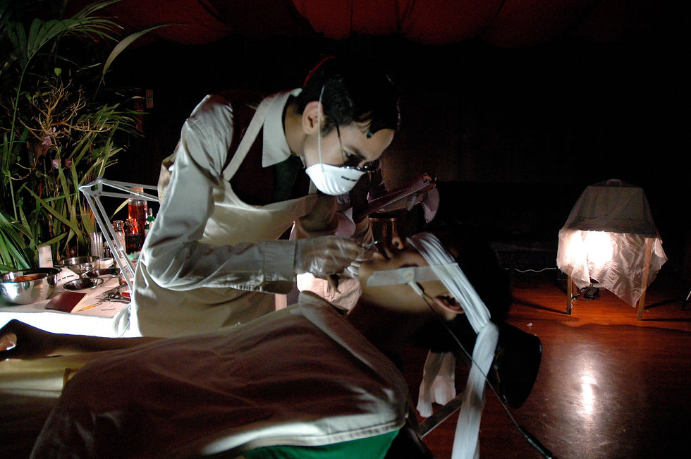 Audience members were invited to take a seat in an old dentist's chair within a purposely designed environment to play on people's fear. Working with sound artist Patrick Furness, a new approach to immersive theatre was explored, through the use of a new sound technology which played audio into the audience member's mouth, with the teeth, head and mouth cavity acting as a sound box. Only for the brave!